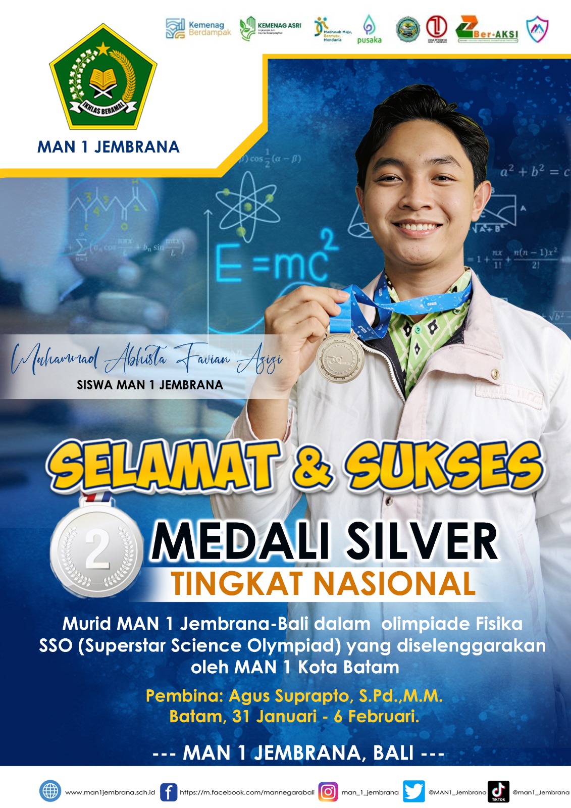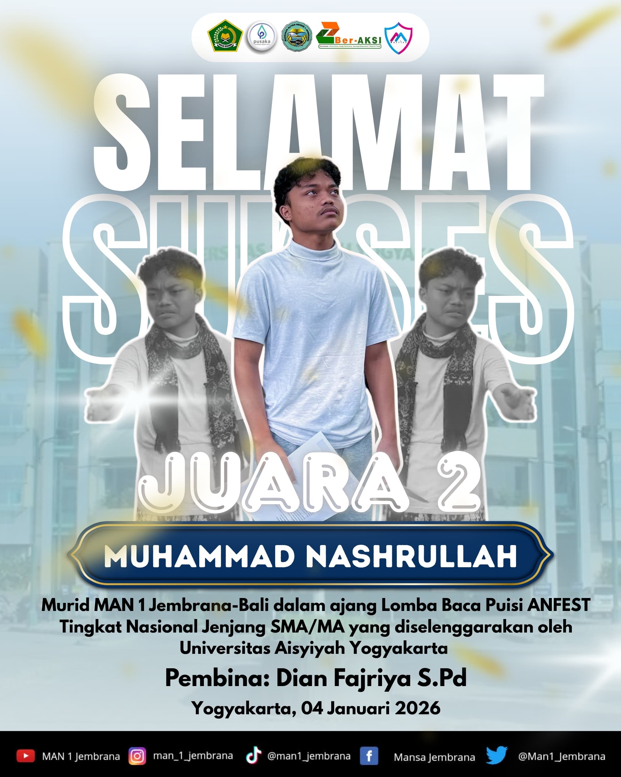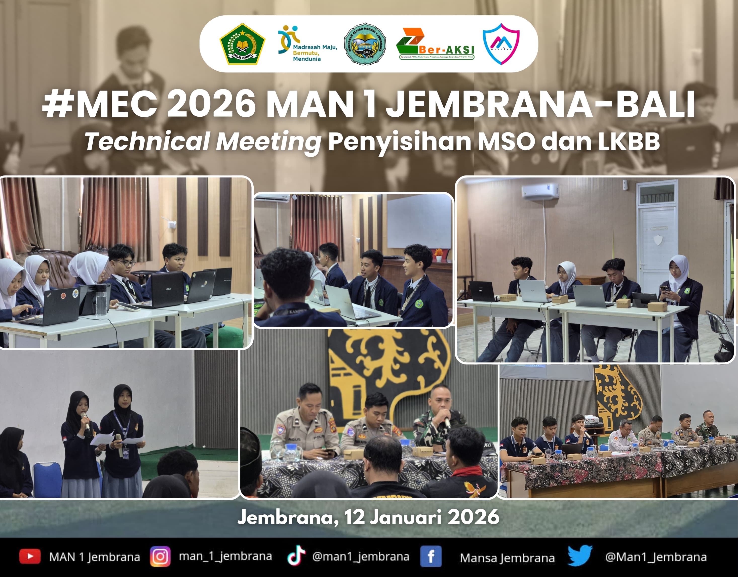 Event ini bukan hanya soal kemenangan, tapi tentang pengalaman, pertemanan, keberanian, dan kebanggaan menjadi bagian dari kompetisi besar ini. Ayo datang, tampil, dan buktikan bahwa kamu adalah bagian dari generasi yang siap berprestasi. Jadilah yang terbaik, melangkah lebih berani, dan tunjukkan potensimu di MAN 1 JEMBRANA EXCELLENCE CHALLENGE 2026!