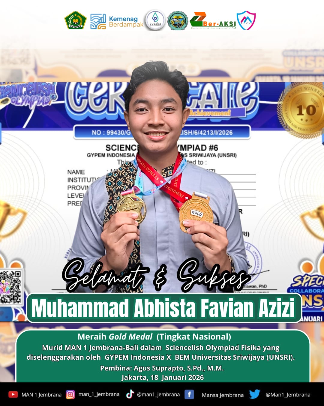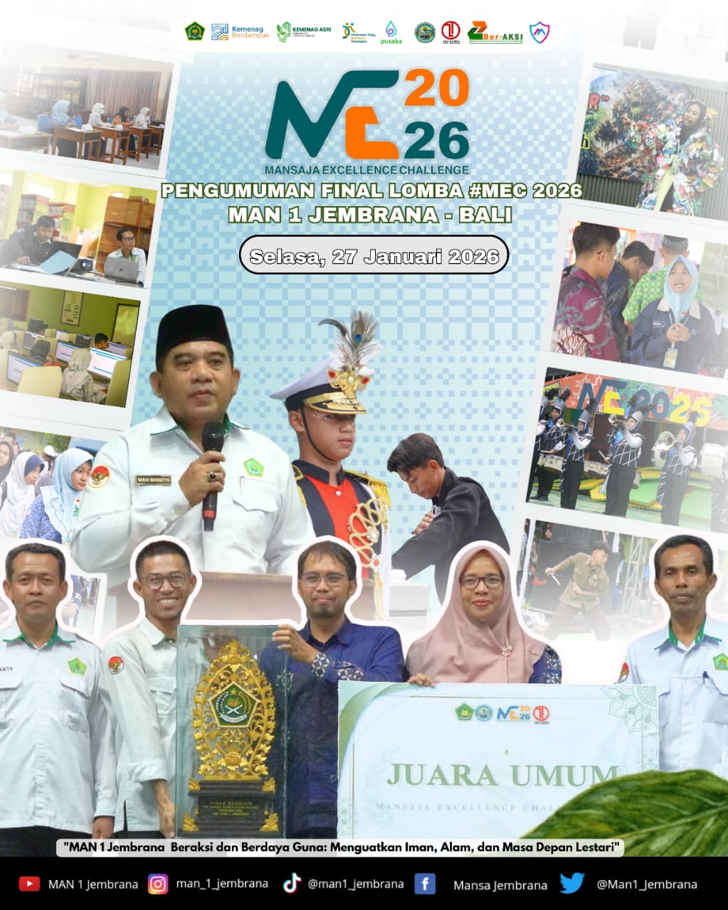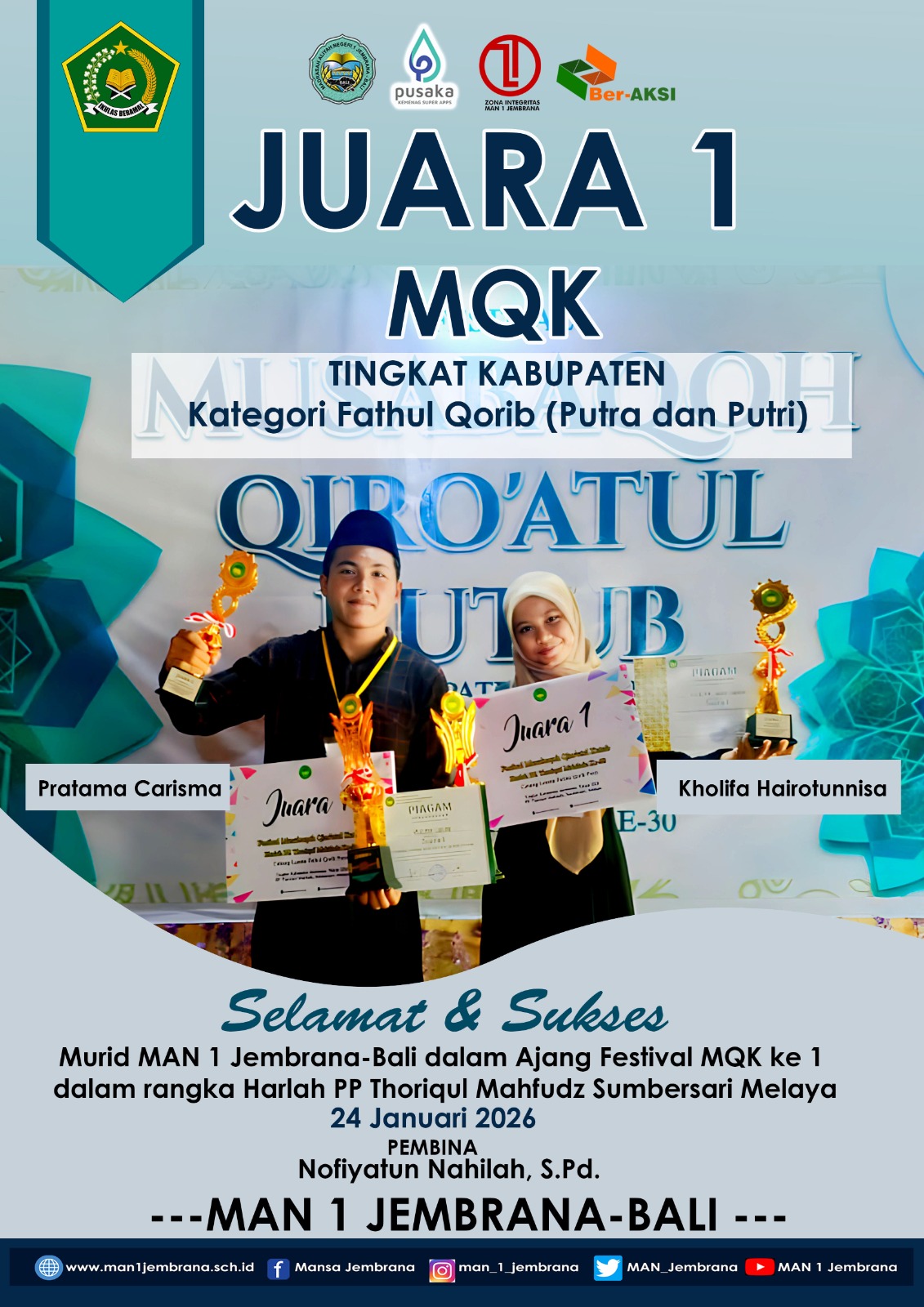 MAN 1 Jembrana merupakan satuan pendidikan tingkat menengah atas berciri khas Islam sesuai dengan kebutuhan karakteristik budaya masyarakat Melayu muslim yang berkembang di Bali bagian barat khususnya Kabupaten Jembrana. Bersama dengan masyarakat muslim dari daerah lainnya